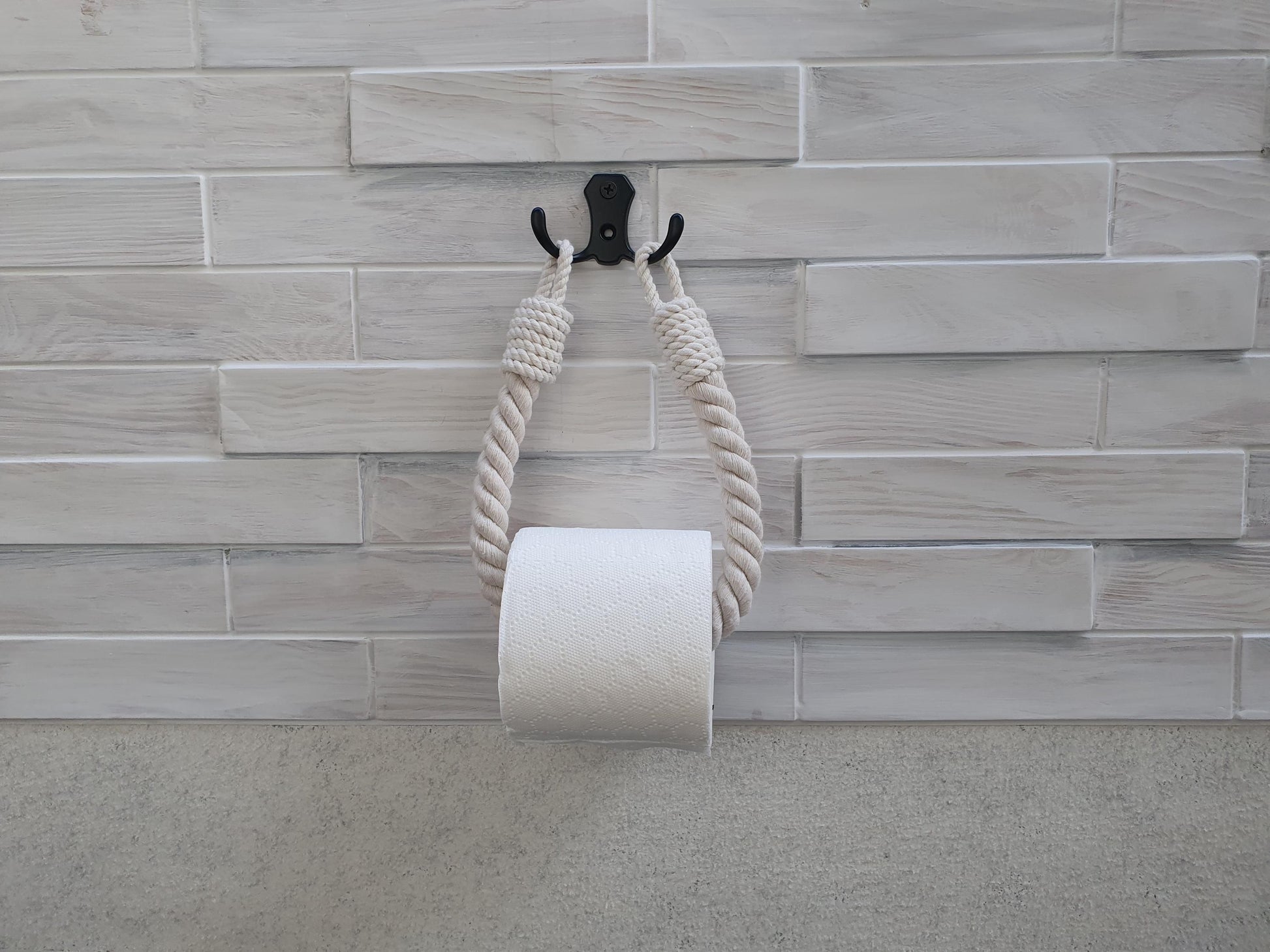 Transform your bathroom with this elegant handcrafted toilet paper holder featuring soft white cotton rope and a sleek metal hook. This minimalist design combines natural texture with modern hardware, perfect for Scandinavian, farmhouse, and contemporary bathrooms.