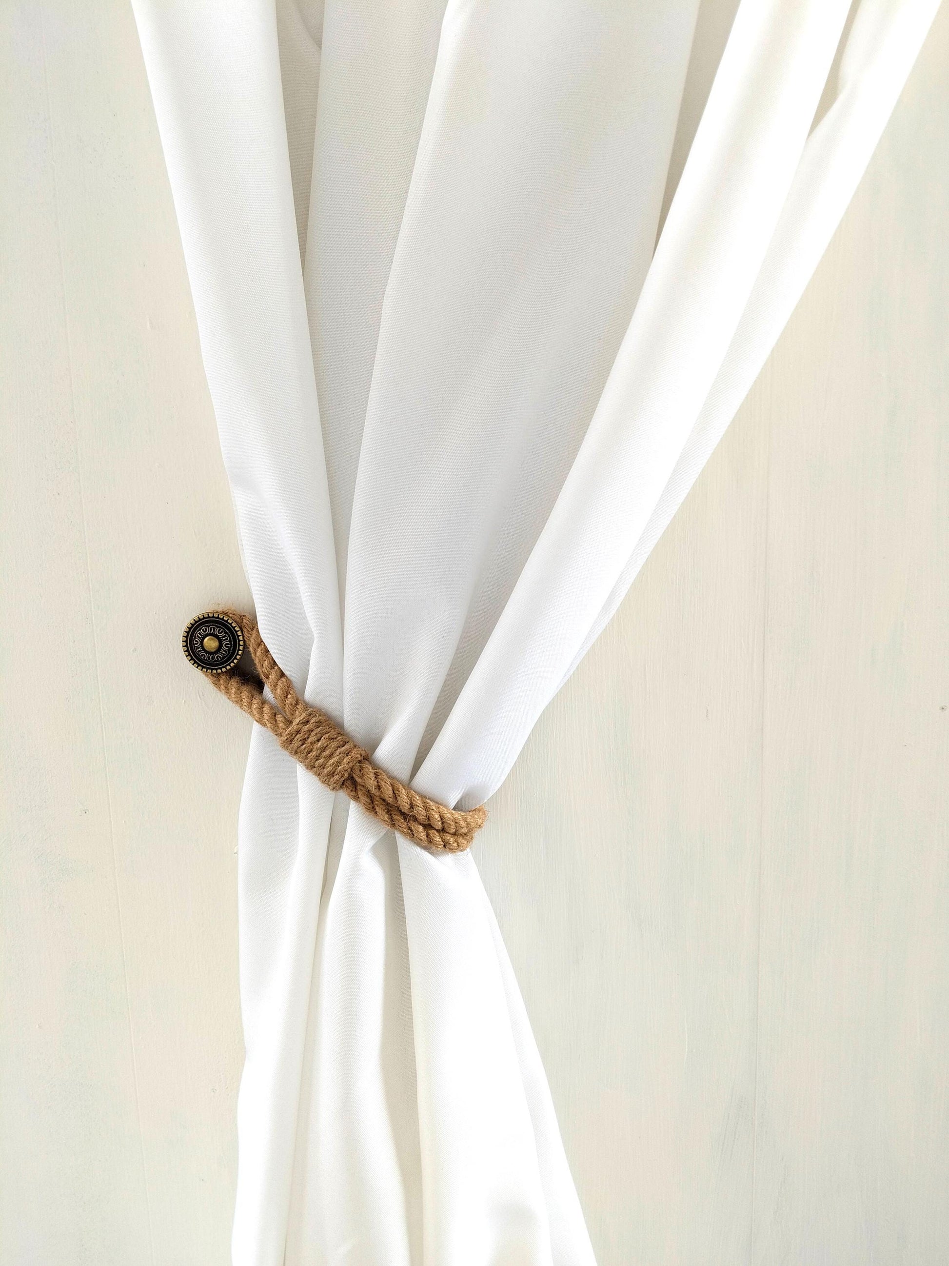 Add natural charm to your windows with this handcrafted jute curtain tieback. Made from eco-friendly natural jute rope, this simple yet elegant holdback is perfect for Scandinavian, boho, rustic, and farmhouse interiors.